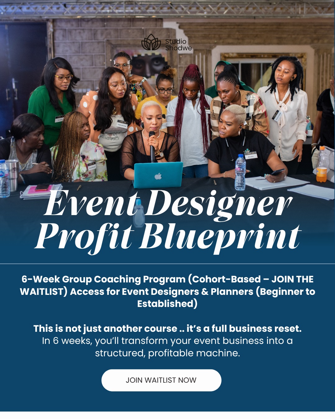 Ready to step out of survival mode and rise into excellence, clarity, and premium profit in 6 weeks? Join the waitlist for the next cohort of The Event Designer Profit Blueprint.